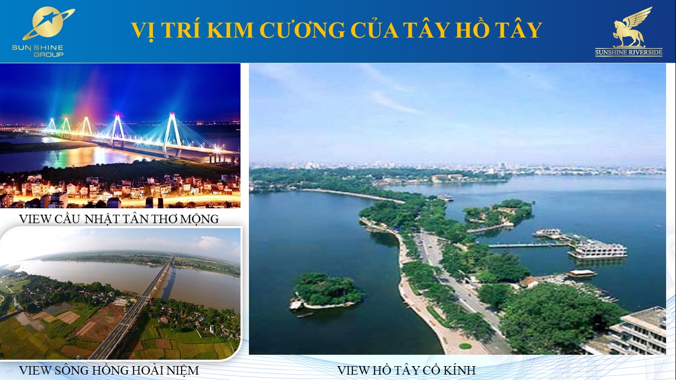 Chính vì thế, các dự án trong khu vực Hồ Tây luôn thu hút được sự chú ý đặc biệt của khách hàng trong và ngoài nước. Những dự án hiện đang thu hút sự chú ý trong khu vực này gồm Ngoại giao đoàn, Starlake, SunGrand city, 6th Element,Sunshine city,… Đặc biệt hơn, dự án Sunshine Riverside năm ngay tại Phú Thượng, trong quần thể khu đô thị Ciputra – Hồ Tây.Dự án được phát triển bởi tập đoàn Sunshine Group.Với vị trí ĐẮC ĐỊA,sở hữu tầm view tuyệt vời ra Hồ Tây, sống hồng và cây cầu Nhật Tân lung linh sắc màu.Lần đầu tiên tại hà nội xuất hiện mô Hình Homtel 5Sao,với đầy đủ dịch vụ,tiện ích sang trọng tiêu chuẩn của một khác sạn 5 sao: vui chơi giải trí, bể bơi trong và ngoài trời, dịch vụ đưa đón, dọn phòng,... . Sunshine Riverside xứng đáng là một Bất Động Sản thương mại với giá trị cao. CĐT cam kết thuê lại 18%/2 năm. Một cơ hội vàng dành cho Nhà đầu tư thông minh.